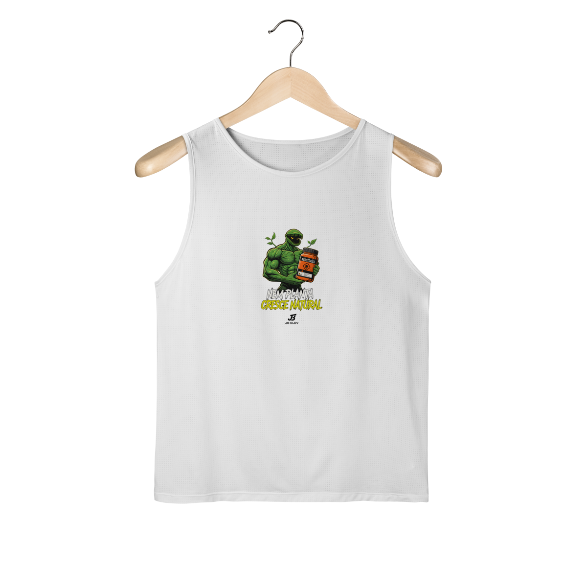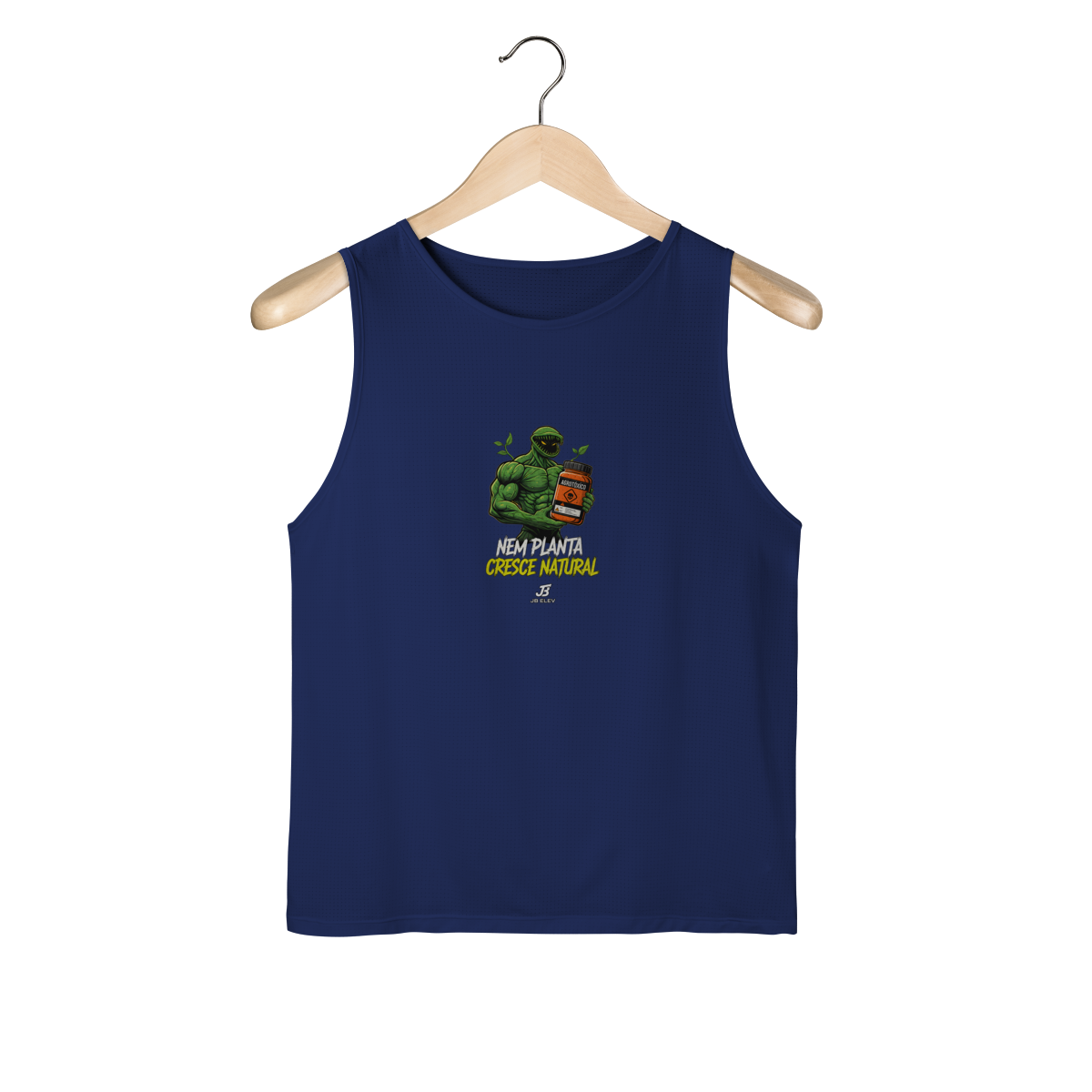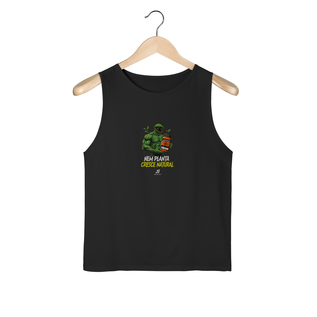 Se até a natureza precisa de um "agrotóxico" especial pra ficar gigante, quem dirá a gente, né? A Regata Nem Planta Cresce Natural é o uniforme oficial de quem cansou de fingir que vive só de creatina e fé.