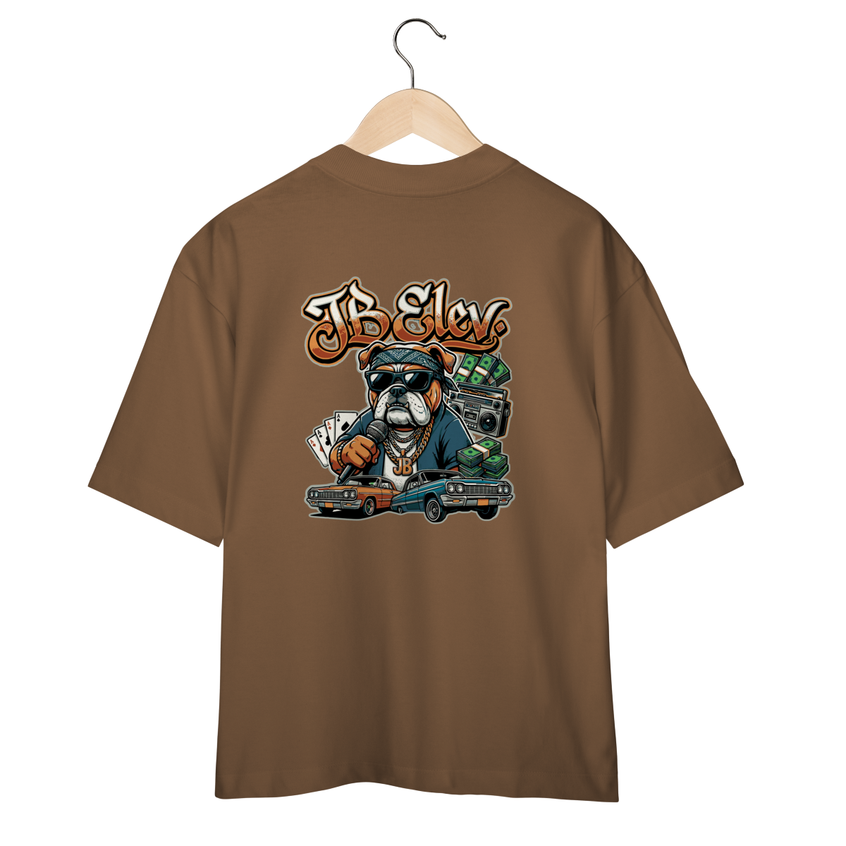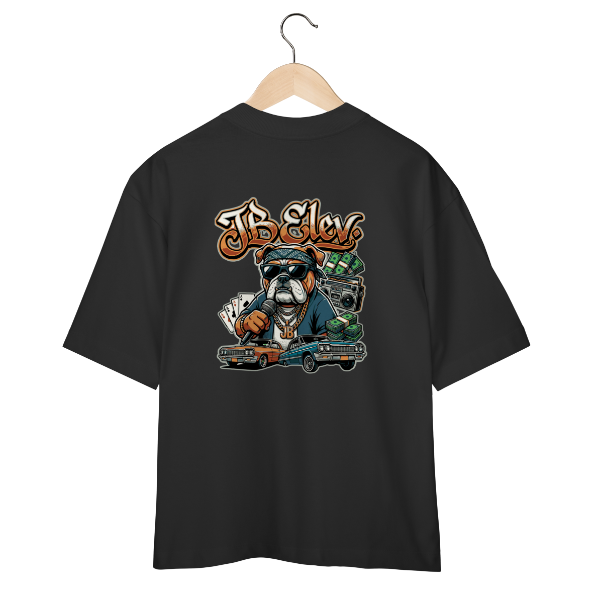 Uma homenagem à era de ouro do Hip Hop. Carros clássicos, correntes pesadas e a postura de quem comanda o jogo sem precisar gritar.